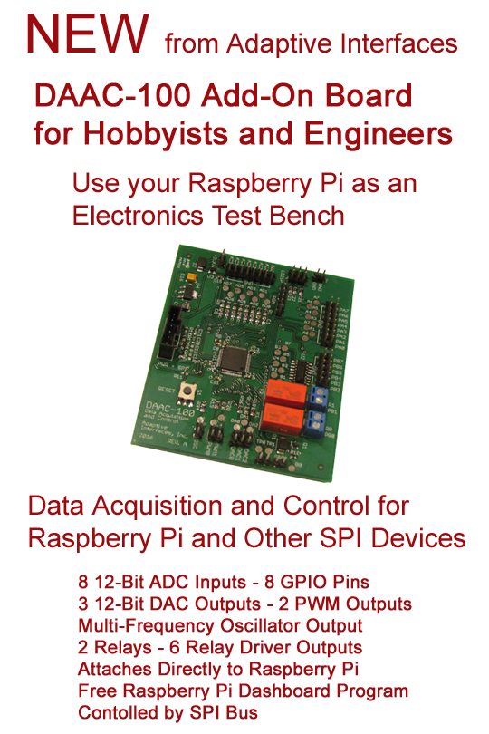 accessory board, the DAAC-100, adds a multitude of electronic functions to the Raspberry Pi.