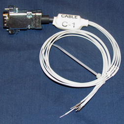 All Adaptive Interfaces instruments use a standard, 9-Pin, Female "DSUB" lower connector for power and control lines and, with the exception of the ETM-100, use a standard, 15-Pin, Female "DSUB" upper connector for inputs and outputs. These types of connectors are very common and can be purchased from electronic suppliers such as Digikey, Mouser and even Radio Shack. They can also be a bit tricky to solder. For this reason, Adaptive Interfaces offers prewired cable assemblies for all instruments. The C-1 cable assembly, for the 9-Pin connector, is included with each instrument. Specific cable assemblies for the 15-Pin connectors of each instrument can purchased separately.