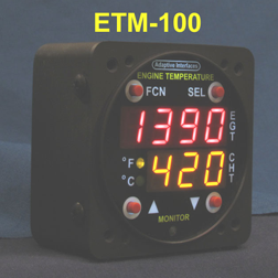 The ETM-100 displays both cylinder head temperature and exhaust gas temperature with an accuracy never experienced with mechanical gauges. Internal, Cold Temperature compensation allows engine temperatures to be confidently tracked from ambient to normal operating conditions using standard Type J and Type K thermocouples. Alarm levels can be optionally set to alert the pilot to any conditions that might indicate an engine problem. The ETM-100 is a Single channel (1 EGT and 1 CHT) instrument.