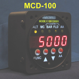 The MCD-100 provides a digital display of altitude information from an encoding altimeter or "blind" altitude encoder. This allows the pilot to see the altitude that is transmitted to ATC at all times. The instrument also allows the pilot to input the local barometer setting and display a corrected altitude that takes place at the ATC facility. The MCD-100 has an altitude alert function to flash the display and drive an audible alarm if the plane varies more than 200 feet from a desired altitude.