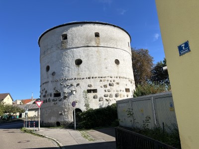 Leaving Vohburg, the trail followed the Donau but away from the river passing through several small towns. Near Neustadt, the trail crossed the river and passed the outskirts of Neustadt before entering the spa town of Bad Gögging. In the center of Bad Gögging, I stopped for a quick rest. The trail then brought me back to the river in Eining where there was a large beer garden and ferry landing. As it was still early, I did not stop for a beer although there were many people drinking beer there.